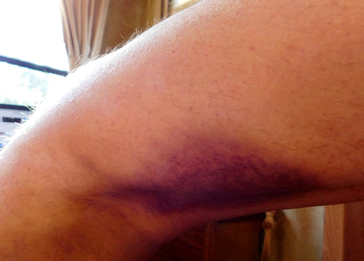 try to look at the back of my knee and thigh. Wow! I had a black bruise
